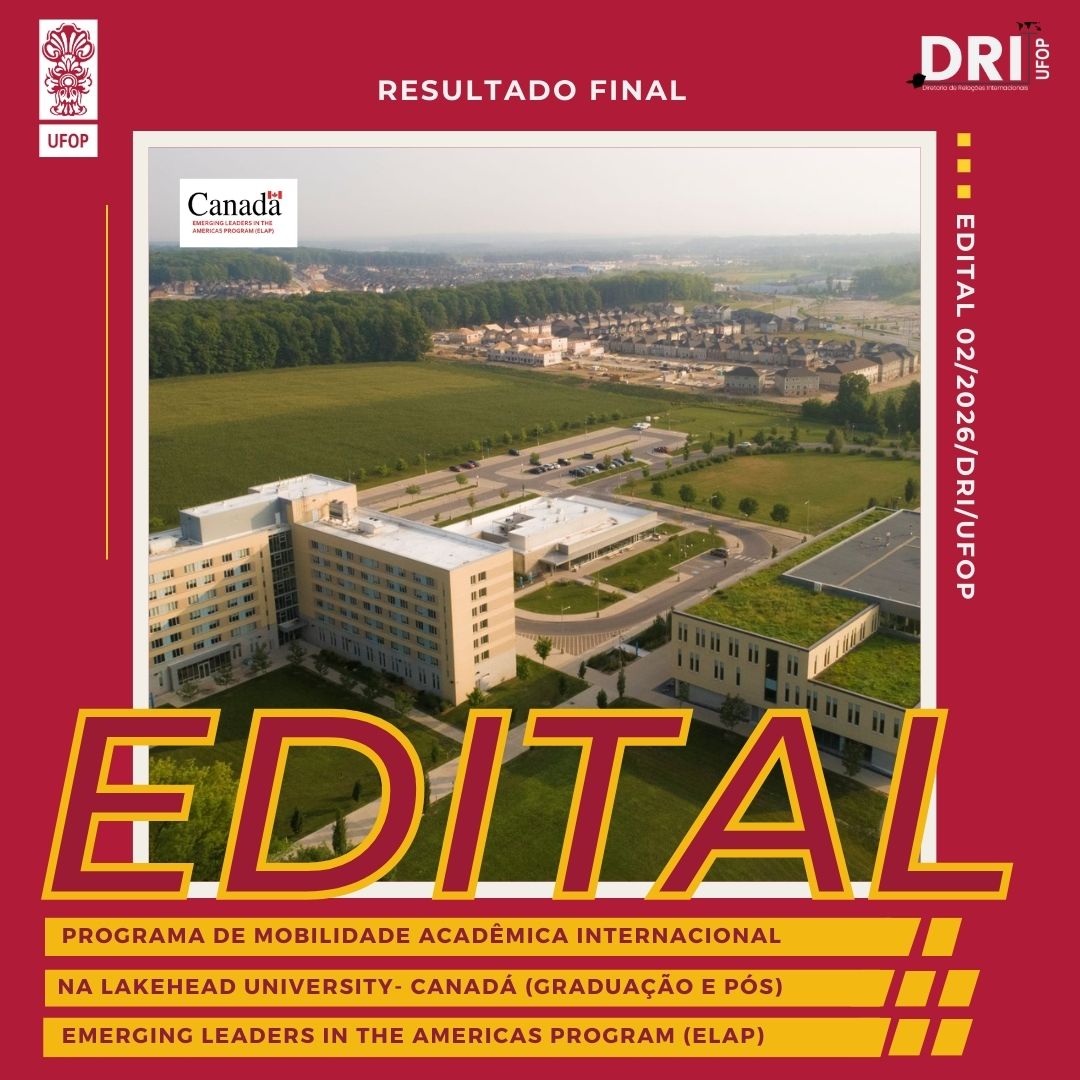 A Diretoria de Relações Internacionais (DRI) torna pública o resultado final do EDITAL 02/2026/DRI/UFOP - ELAP Lakehead University.