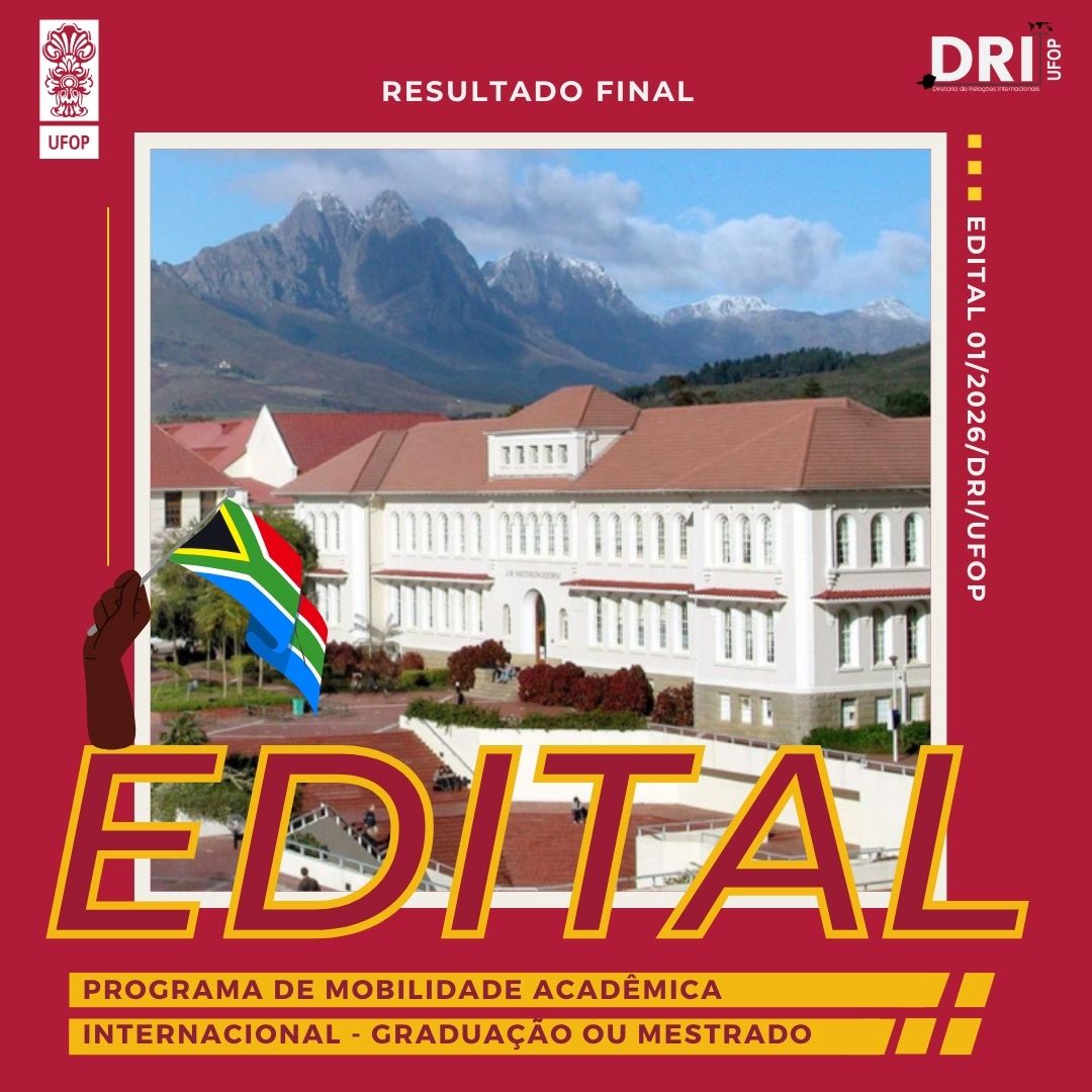 A Diretoria de Relações Internacionais (DRI) torna pública o resultado final do EDITAL 01/2026/DRI/UFOP - Programa de Mobilidade Acadêmica Internacional.