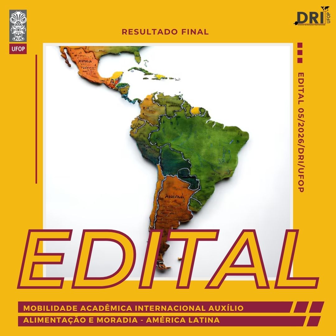 A Diretoria de Relações Internacionais (DRI) torna público o resultado final do Edital 05/2026/DRI/UFOP – Mobilidade Acadêmica Internacional com auxílio alimentação e moradia na América Latina