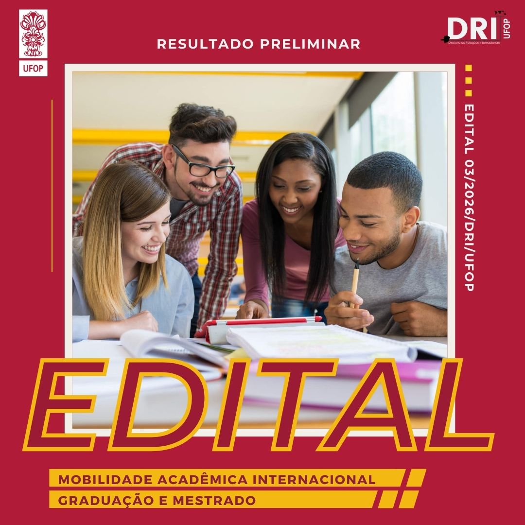 A Diretoria de Relações Internacionais (DRI) torna público o resultado preliminar do Edital 03/2026/DRI/UFOP – Mobilidade Acadêmica Internacional de graduação e mestrado